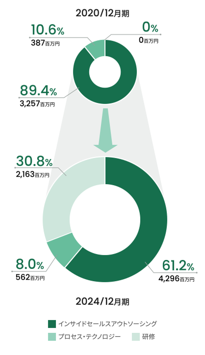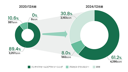 - 人材育成会社や、マーケティングサービス企業などを順次買収し、「B2Bの売上成長支援」の基盤を支える事業体制を築く